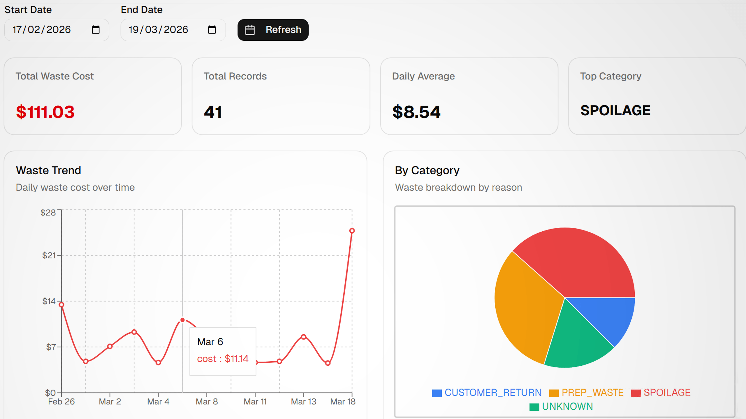 See exactly where your food cost is going with visual waste analysis and COGS tracking.